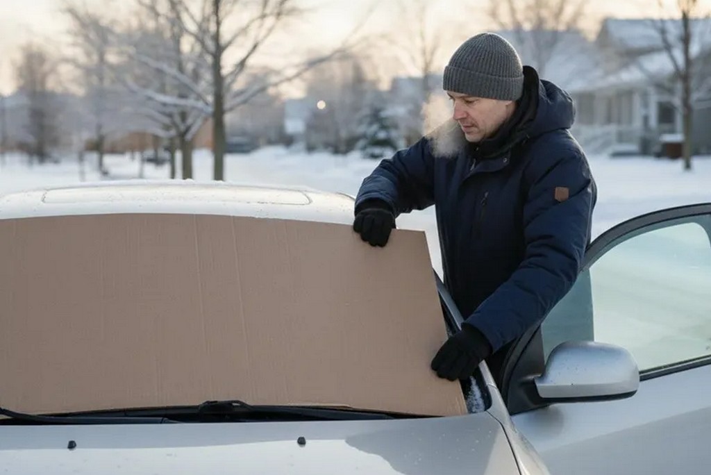 Зима для водіїв часто починається з однакової проблеми – замерзлого лобового скла. Іній та лід не лише дратують, а й забирають дорогоцінні хвилини зранку. Втім, експерти стверджують: уникнути цього можна без дорогих засобів і складних маніпуляцій. Достатньо заздалегідь подбати про елементарний захист скла. Простий лайфхак, перевірений багатьма автомобілістами, допоможе зберегти огляд чистим навіть у морозні ночі. Розповідаємо, у чому суть методу та як правильно ним скористатися. Чому лобове скло замерзає взимку У холодну пору року різниця температур і підвищена вологість спричиняють утворення інею та льоду на склі. Особливо швидко це відбувається вночі, коли автомобіль стоїть просто неба. За даними AA, проблему можна значно зменшити, якщо підготувати авто заздалегідь і мінімізувати контакт скла з холодним повітрям та вологою. Як зробити, щоб лобове скло не замерзало Суть поради надзвичайно проста – накрити лобове скло на ніч. Для цього підійде звичайний шматок щільного картону, який створює бар’єр між склом і морозним повітрям. Такий метод запобігає утворенню інею, тож зранку вам не доведеться довго відскрібати лід. Фахівці радять також, за можливості, паркувати авто ближче до будинку або в гаражі – навіть незначне тепло зменшує ризик обмерзання. Автомобілісти у соцмережах і на форумах підтверджували: картон, рушник або навіть стара ковдра справді допомагають. Один із популярних варіантів – постійно тримати шматок картону в багажнику на випадок різкого похолодання. Крім того, зменшення зайвої вологи всередині авто також допомагає боротися з конденсатом і запотіванням скла. Як правильно використовувати картон Щоб лайфхак був ефективним, важливо дотримуватися кількох правил: