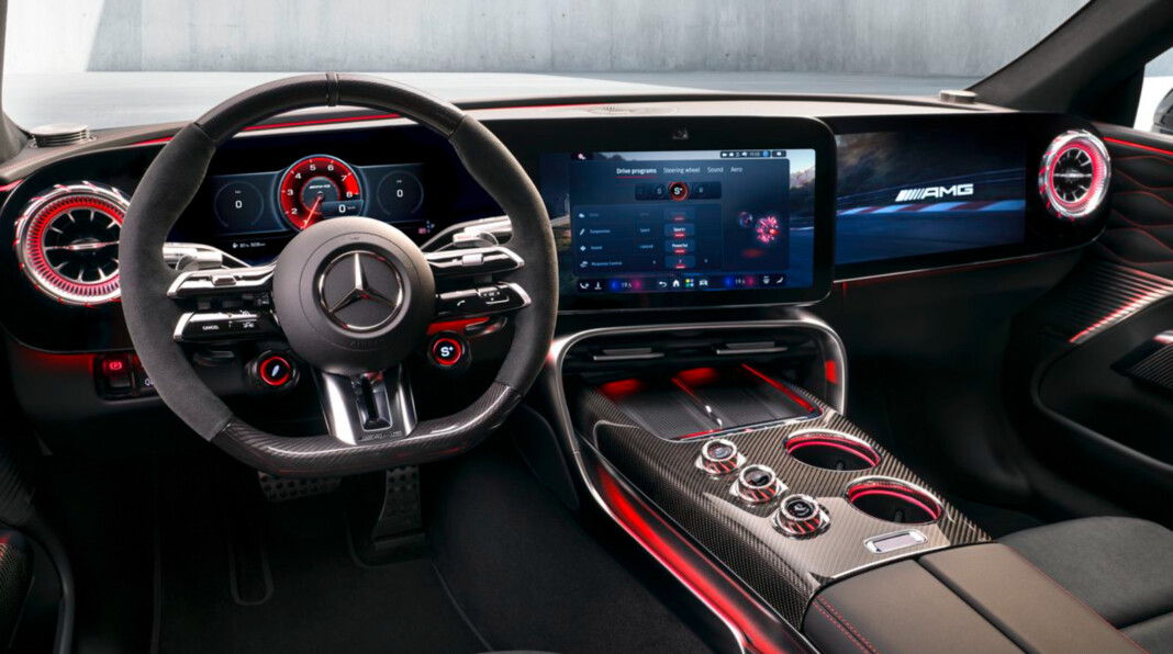 Компанія Mercedes-Benz разом із підрозділом Mercedes-AMG вперше показали інтер’єр майбутнього електричного седана Mercedes‑AMG GT 4‑Door нового покоління. Модель має стати однією з найпотужніших електричних машин бренду, пише ampercar.com. Салон виконаний у максимально спортивному стилі. Попереду встановлено одразу три великі екрани: цифрову панель приладів на 10,2 дюйма, центральний дисплей на 14 дюймів і опційний екран для пасажира такого ж розміру. Найбільш незвично виглядає саме центральний дисплей — він нахиляється у бік водія, що, за словами компанії, покращує взаємодію людини з автомобілем. Інтер’єр поєднує карбон, шкіру з ромбоподібною прострочкою та фірмову атмосферну підсвітку. На центральному тунелі розмістили систему AMG Race Engineer із трьома регуляторами, які дозволяють швидко змінювати налаштування електромоторів, керованості та роботи системи стабілізації. Читайте також: Genesis готує несподівану версію G80: седан отримає нову гібридну установку (ФОТО) Новинка також отримає мультимедійну систему MBUX нового покоління на базі операційної системи MB.OS. Очікується, що електричний седан дебютує вже цієї весни, а його потужність може сягнути близько 1500 кінських сил. |