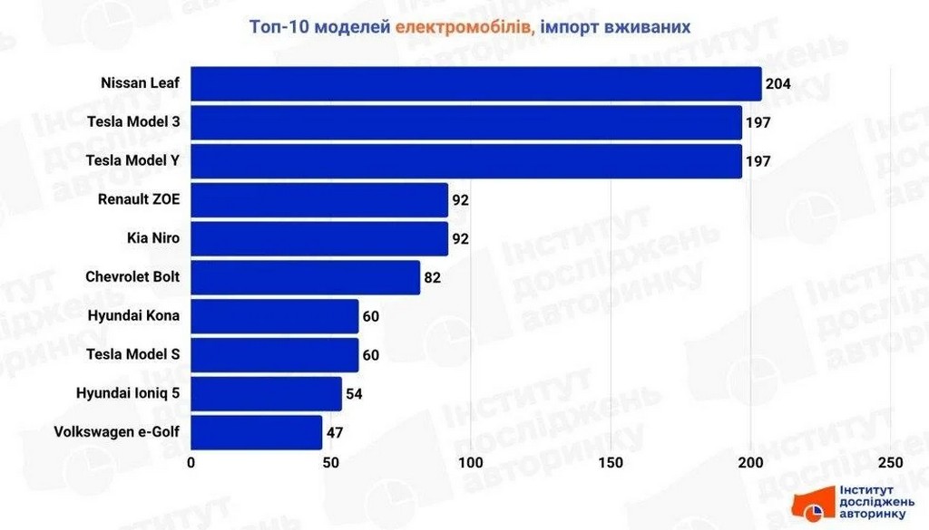 У березні 2026 року попит на електромобілі в Україні різко зріс - зареєстровано 6361 авто. Причиною став стрибок цін на пальне: дизель досяг 86 грн/л, бензин А-95 — близько 72 грн/л. Найбільший приріст показав вторинний ринок. Про це пише mmr.net.ua. Найпопулярніші електромобілі в Україні: внутрішній ринок Внутрішні перепродажі зросли на 124,6%, сформувавши чіткий рейтинг моделей. Топ-10 електромобілів внутрішнього ринку: 1. Nissan Leaf — 661 авто 2. Tesla Model 3 — 428 авто 3. Tesla Model Y — 311 авто 4. Volkswagen e-Golf — 256 авто 5. Renault ZOE — 231 авто 6. Tesla Model S — 175 авто 7. Hyundai Kona — 165 авто 8. Kia Niro — 160 авто 9. Chevrolet Bolt — 142 авто 10. Volkswagen ID.4 — 138 авто. Лідером залишається Nissan Leaf, який утримує позиції завдяки доступності та простоті експлуатації. Імпорт електромобілів в Україну: топ моделей Імпорт уживаних електрокарів зріс на 84,9% за місяць. Структура попиту схожа, але з більшим акцентом на новіші авто. Топ-10 імпортованих електромобілів: 1. Nissan Leaf — 204 авто 2. Tesla Model 3 — 197 авто 3. Tesla Model Y — 197 авто 4. Renault ZOE — 92 авто 5. Kia Niro — 92 авто 6. Chevrolet Bolt — 82 авто 7. Hyundai Kona — 60 авто 8. Tesla Model S — 60 авто 9. Hyundai Ioniq 5 — 54 авто 10. Volkswagen e-Golf — 47 авто. У цьому сегменті Nissan Leaf також зберігає перше місце, однак моделі Tesla активно скорочують відставання. Читайте також: Чим відрізняється Duster від бюджетного кросовера Renault 2026 року (ФОТО) Загалом ринок демонструє стабільний перехід українців на електротранспорт через зростання витрат на пальне та розширення інфраструктури зарядних станцій. |